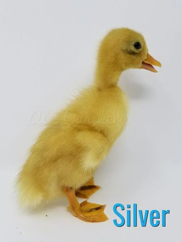Silver is a diluted blue. As babies, they tend to appear yellow with very slight grey markings under the eyes, and some will even have black or grey foot markings. As adults, they are a very light blue color. Some will not show color until they have reached adult molt. Others may appear white with dark bills and foot markings only as they can be so lightly marked you can't see their color. These too can have black bleed through feathers as adults.